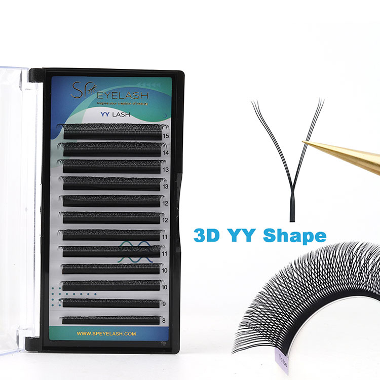 3D YY Lash Extensions har en Y-formet design med 6 individuelle vippeforlengelser limt sammen. Denne unike formen gjør det veldig enkelt å skape vifter når du griper med pinsett, med 3 tips på hver side. Ingen spesielle ferdigheter kreves, og du kan umiddelbart oppnå en 6D-klyngeeffekt.