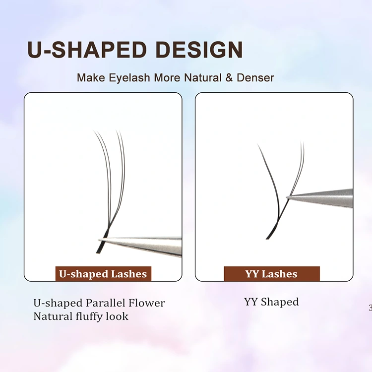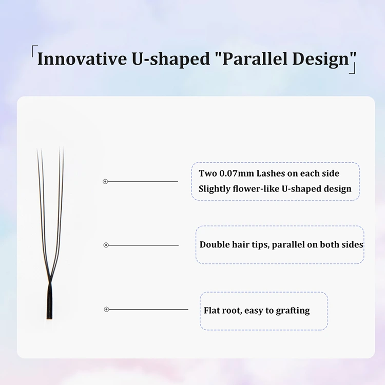 Den innovative U-formede strukturdesignen gjør at den samme boksen med falske øyevipper enkelt kan skape en sømløs overgang fra naturlig naken sminke til tykk og sjarmerende sminke. En boks som tilfredsstiller forskjellige sminkebehov og passer over 90% av øyetyper.